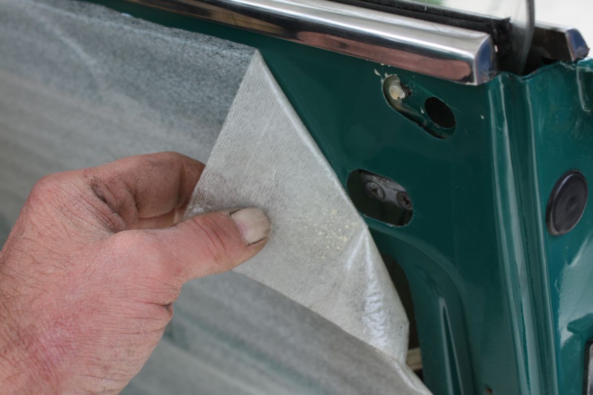 - Demontage aller relevanten Verkleidungen wie Tür, Seitenwand, Kofferraum, A-Säule, Heckklappe etc., um Zugang zu den einzelnen Hohlräumen zu erreichen. In manchen Einzelfällen sollten noch ein Paar 6mm Bohrungen gesetzt werden, um optimalen Zugang zu allen Hohlräumen zu gewährleisten. Diese werden nach der Versiegelung mit Gummistopfen verschlossen.