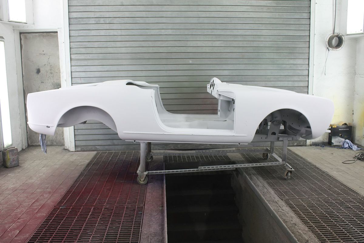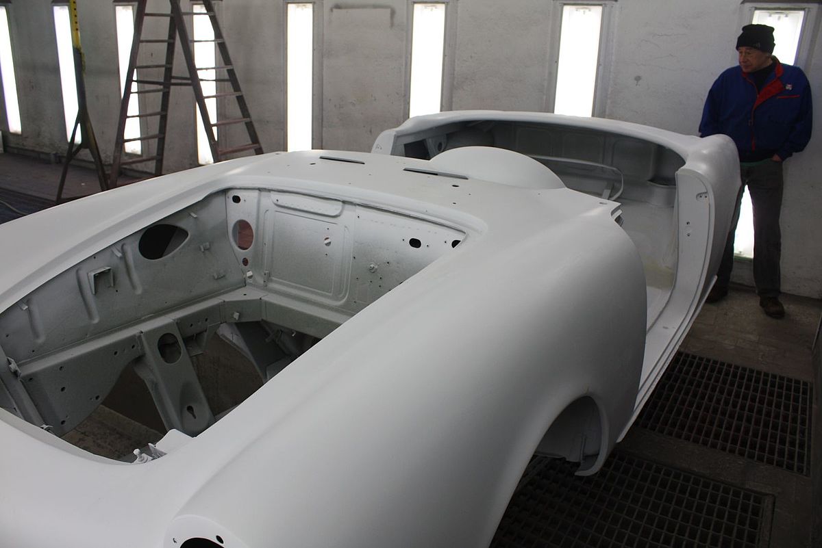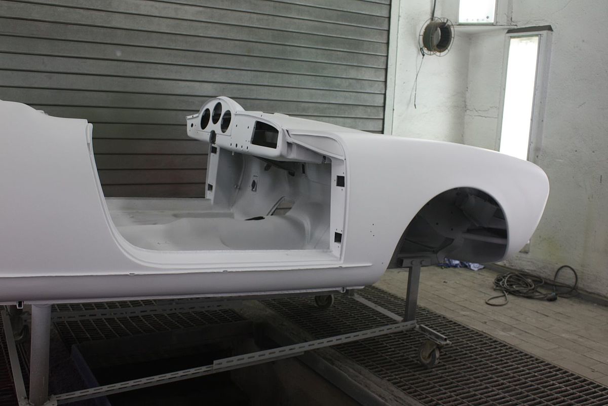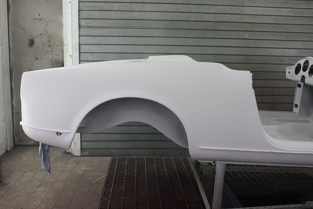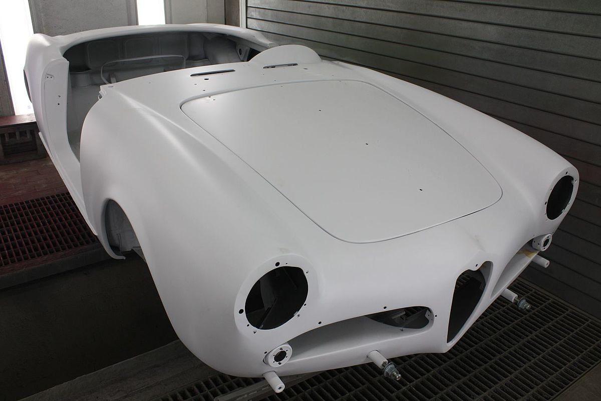 Die Lackierung der Karosse übernimmt die Firma Lorenz in Wetter. Anfang Januar haben wir das Body nach Wetter gebracht und die entsprechenden Absprachen seitens der jeweiligen Umsetzung vereinbart. Das aktuelle Ergebnis sehen Sie unten - eine verdammt gute Basis. Zur Zeit läuft die Anfrage beim Museo Storico seitens der Farbnummer. Wenn diese dann beantwortet ist, gehts an die Endlackierung.