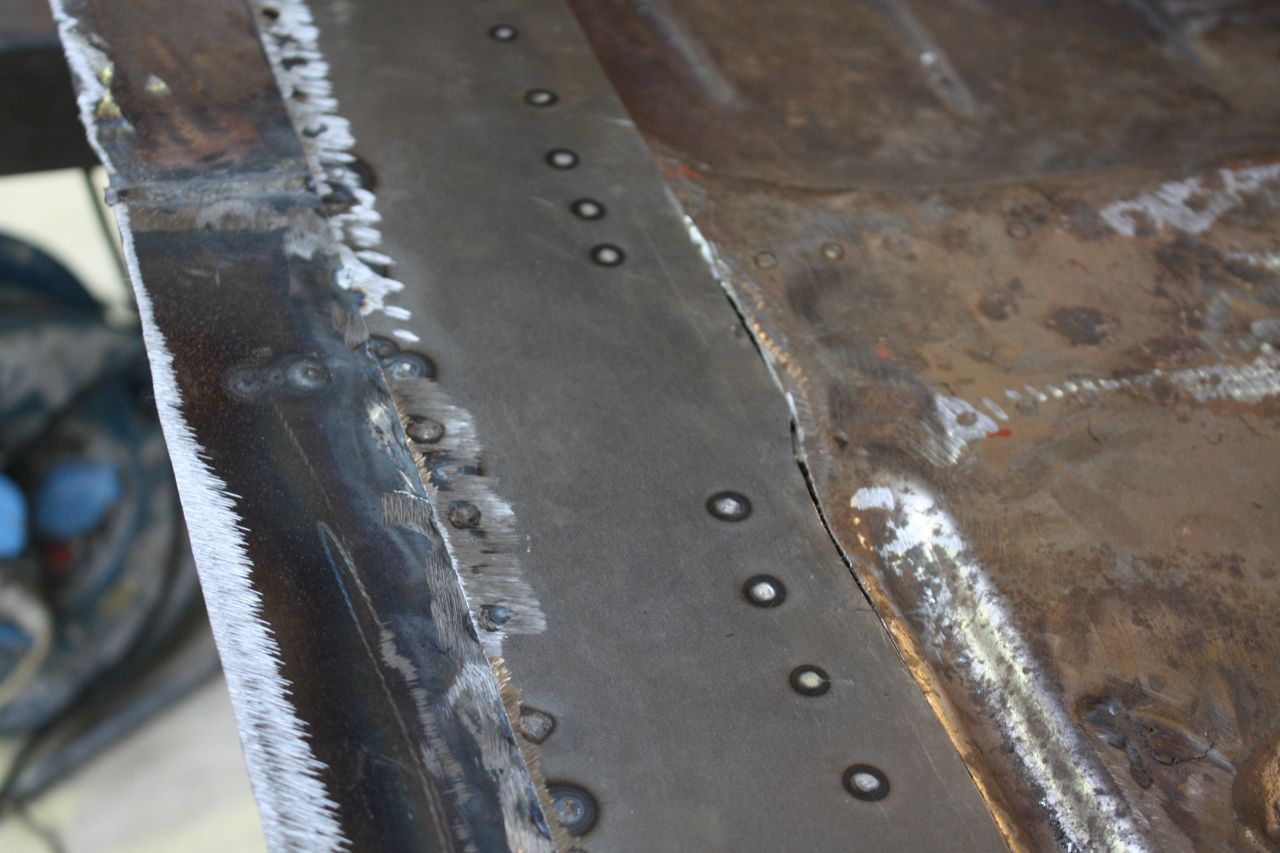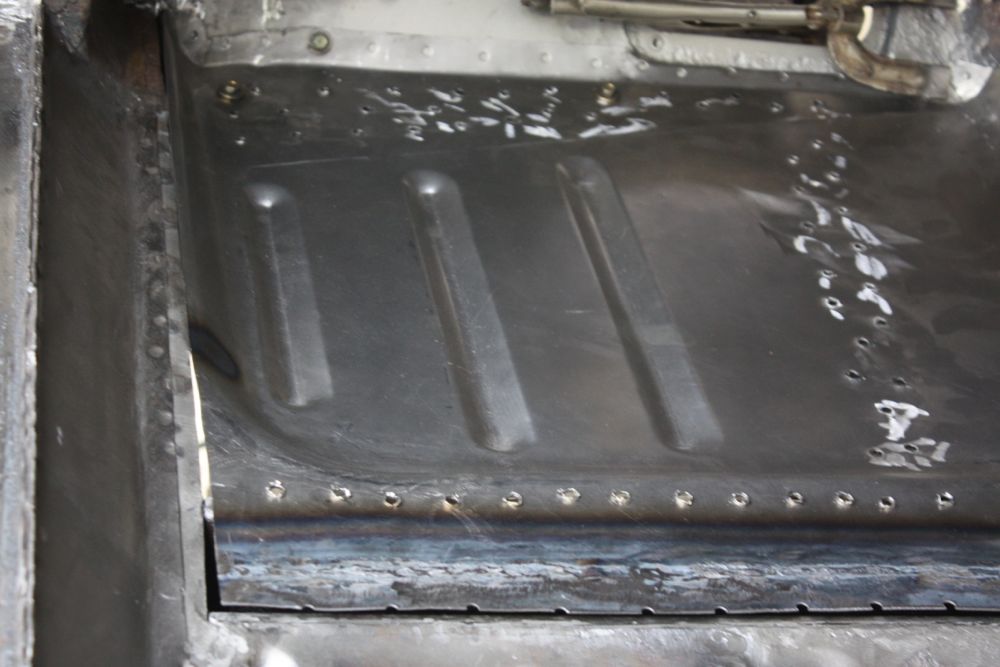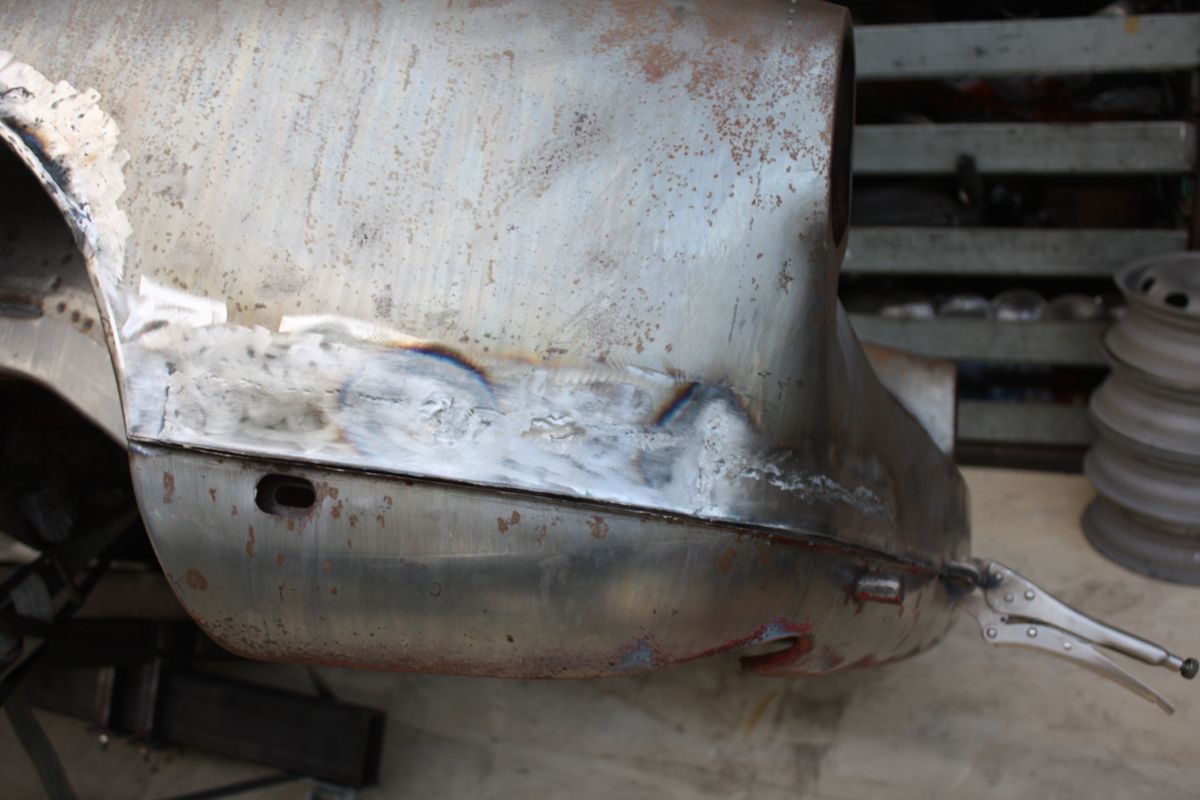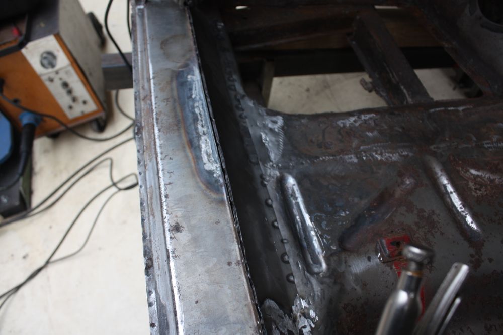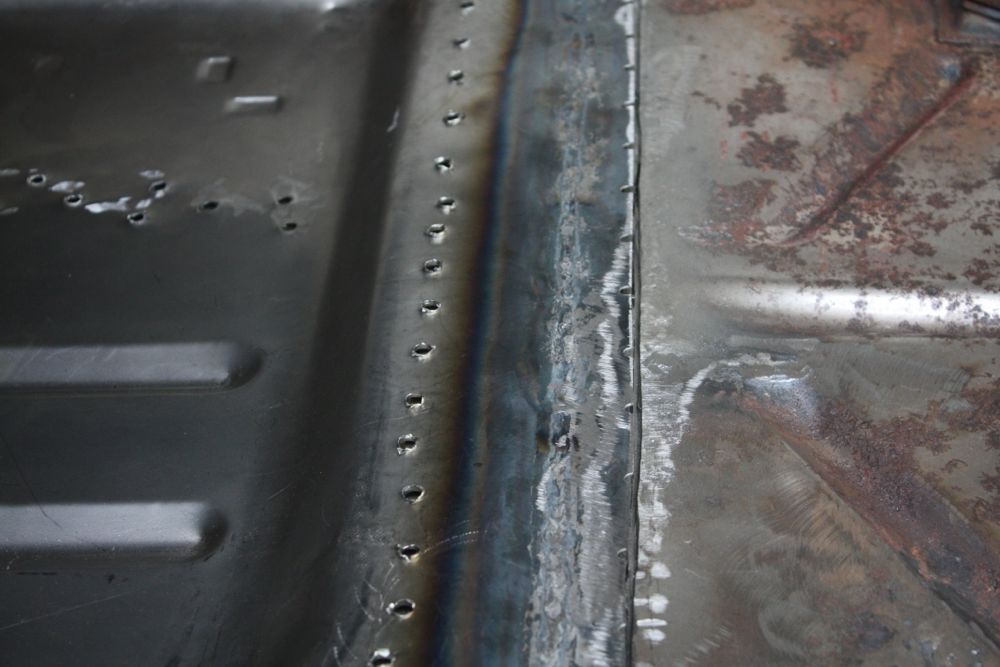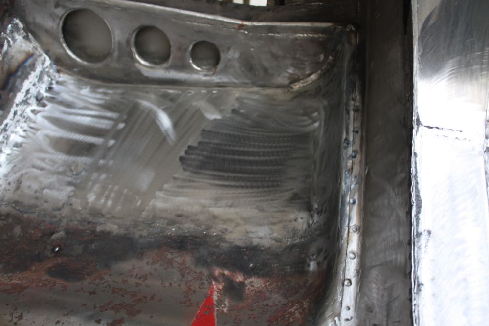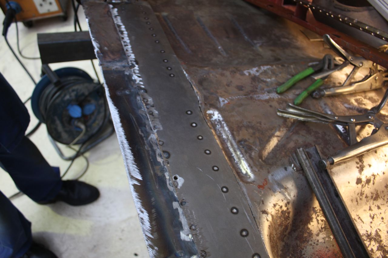 Nun ist der Boden fest. Jetzt wird noch die autogene Naht gerichtet und geglättet. Als letztes folgt dann das untere Heckblech...