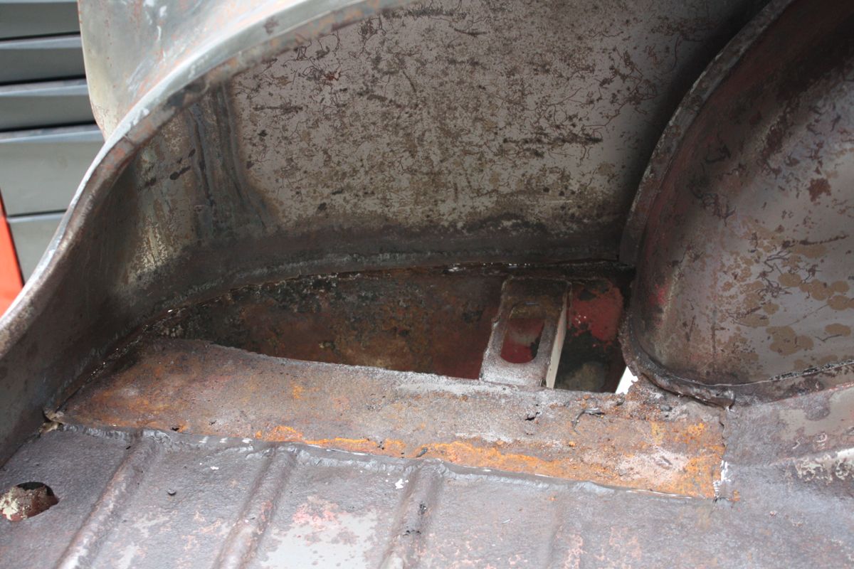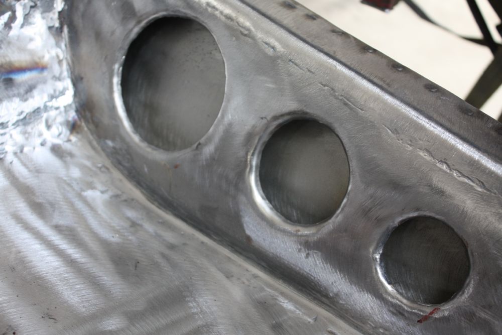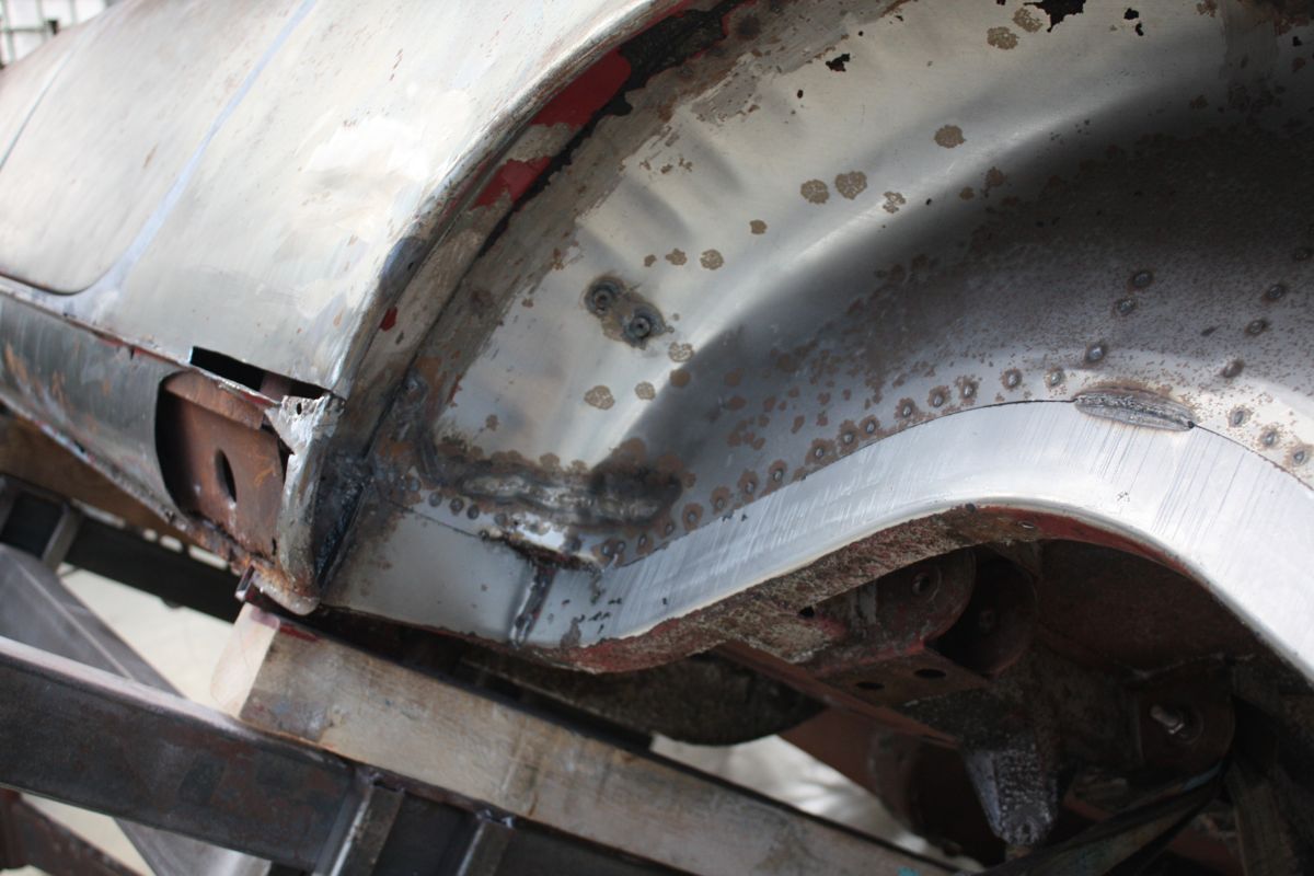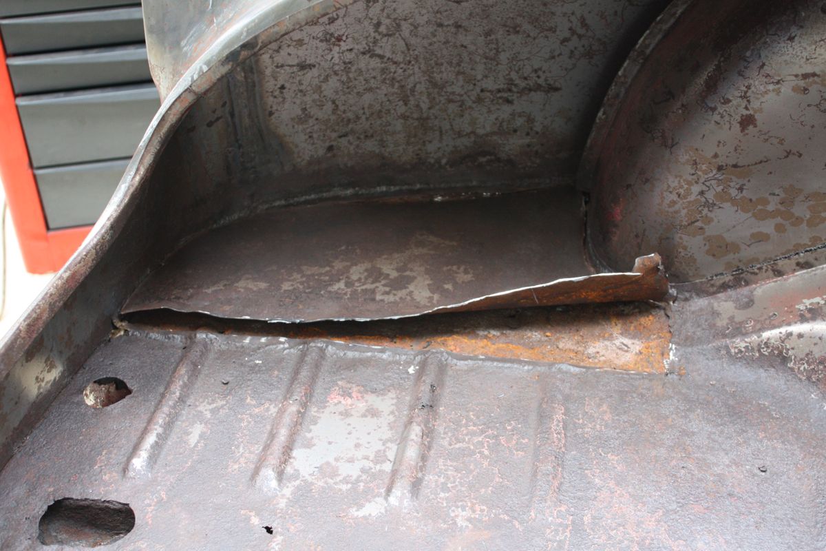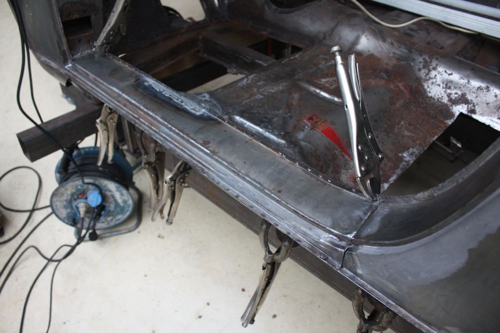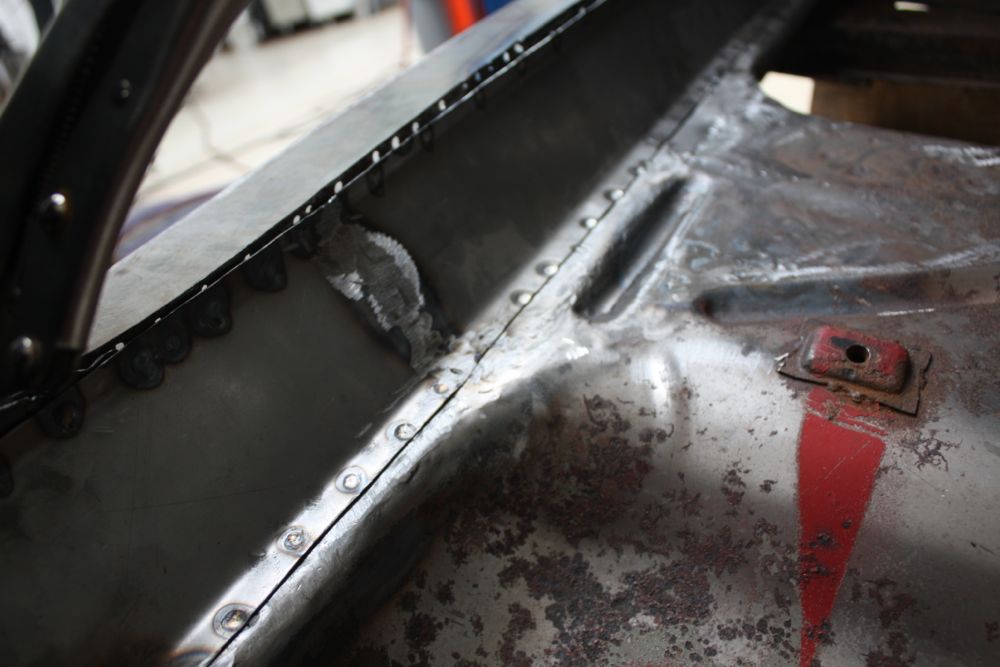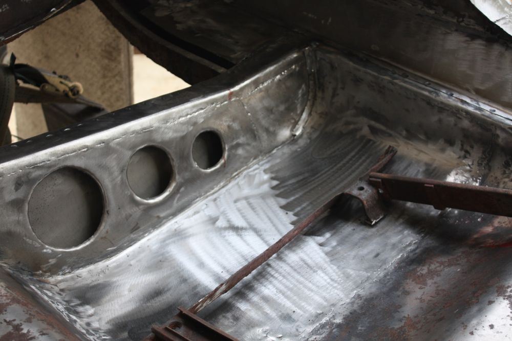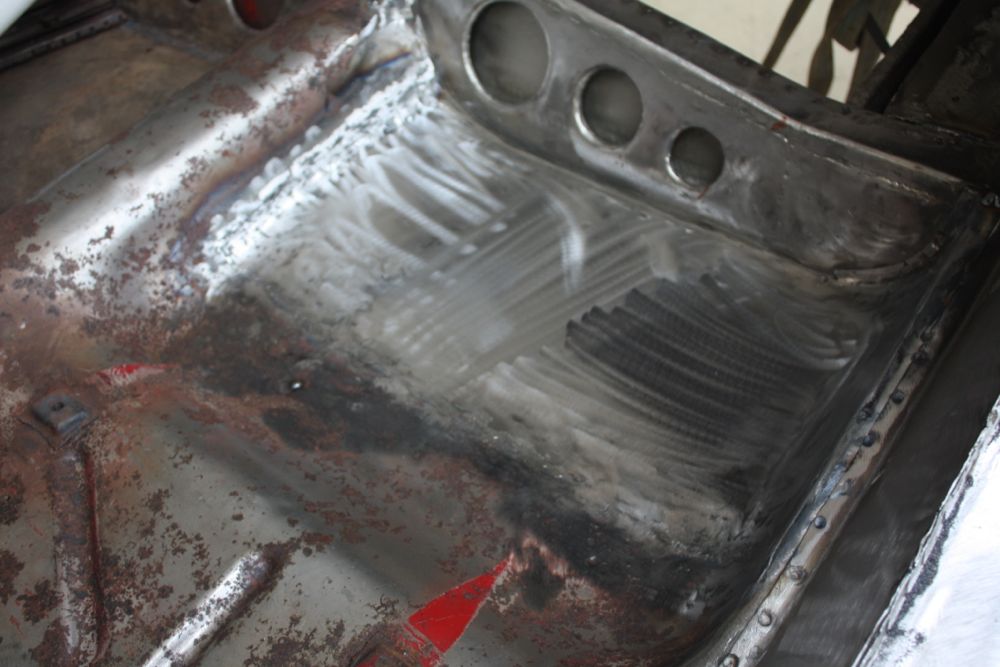 Nun ist der Boden fest. Jetzt wird noch die autogene Naht gerichtet und geglättet. Als letztes folgt dann das untere Heckblech...