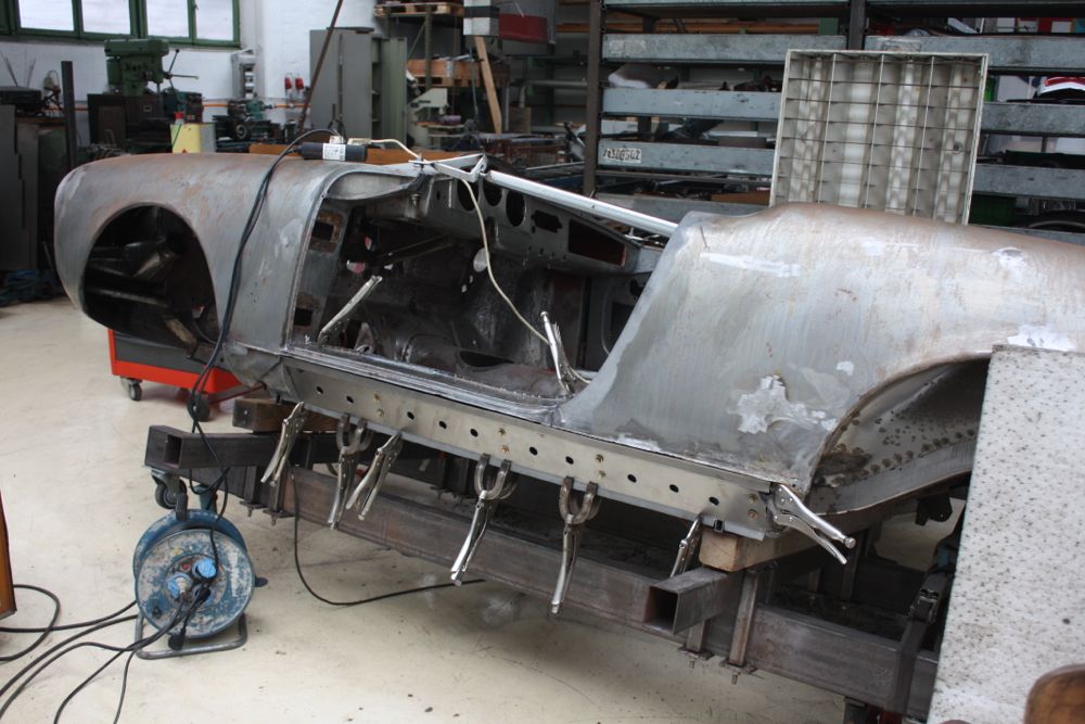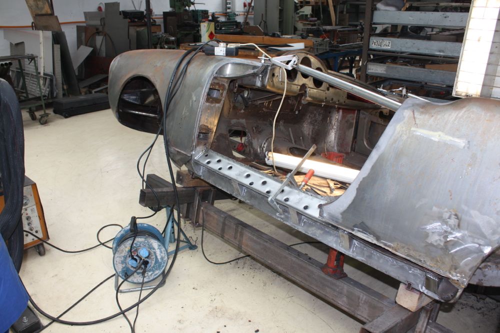 Das anfertigen bzw. restaurieren dieses Bereichs stellt unseren Karosseriebaumeister Hartmut Fichtel doch vor eine hohe Anforderung. Aber dank seiner unschätzbaren Erfahrung ist auch dies für Ihn kein Problem. Bestens vertraut mit den alten Techniken wächst das Gerüst von Tag zu Tag...