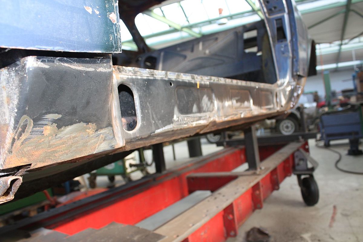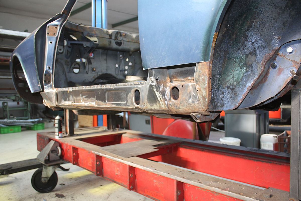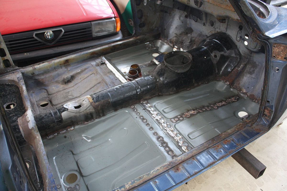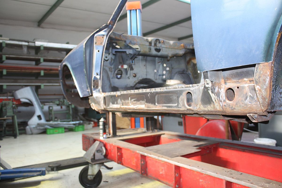Die Karosserie ist die Basis - also sollte sie auch gesund und stabil sein. Als Spenderfahrzeug dient in dem Fall ein 2 Liter-Bertone, welchen ich von Christian Bovensiepen nahe Hof bekommen habe. Der Vorderbau, sowie der Schwellerbereich waren ziemlich gesund - es fehlte leider das Heck. Schade, aber so ist es eben. Hier die Bilder vom Ursprungszustand bis Stand heute, wobei wir folgende Bereiche ausgetauscht haben: